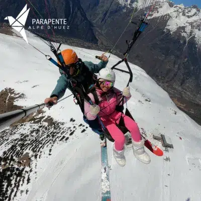 Le vol Panorama en parapente à l’Alpe d’Huez est idéal dès 5 ans, avec un décollage possible en ski, snowboard ou à pied.
